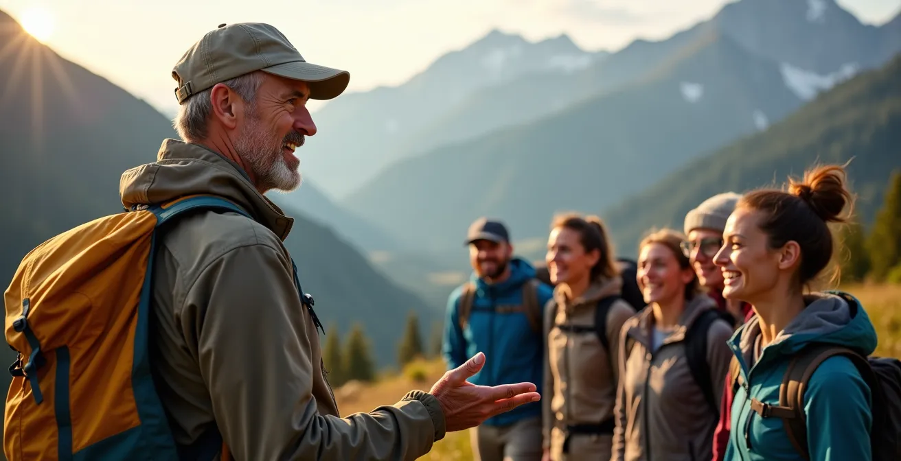 À l’inverse, une randonnée contemplative ou un trek culturel appellent un tout autre profil. L’objectif n’est plus seulement d’atteindre un sommet, mais de vivre une expérience immersive, de prendre le temps, d’échanger. Ici, le guide idéal endosse un rôle de médiateur et de facilitateur. Son expertise ne se limite plus à la technique, elle s’étend à la connaissance du milieu, à sa capacité à créer du lien et à gérer les temps de pause. Un guide qui imposerait un rythme de marche forcée sans laisser de place à la contemplation briserait le contrat implicite de ce type de séjour. Il ne serait pas « mauvais », il serait simplement sur le mauvais terrain, appliquant un logiciel sécuritaire à une attente expérientielle.