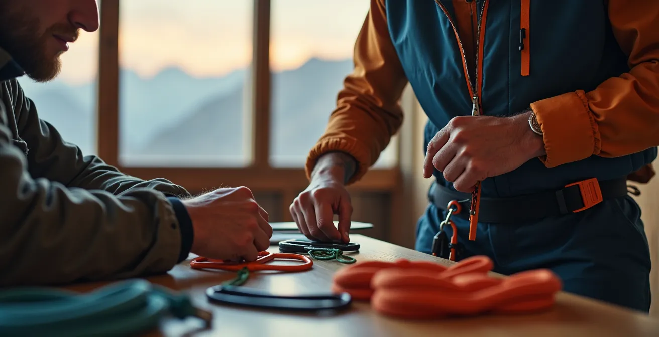 - Vérification croisée : C’est l’étape cruciale. Le guide doit vérifier l’équipement de chaque participant un par un, et idéalement, instaurer une procédure de vérification mutuelle (« partner check ») dans le groupe.